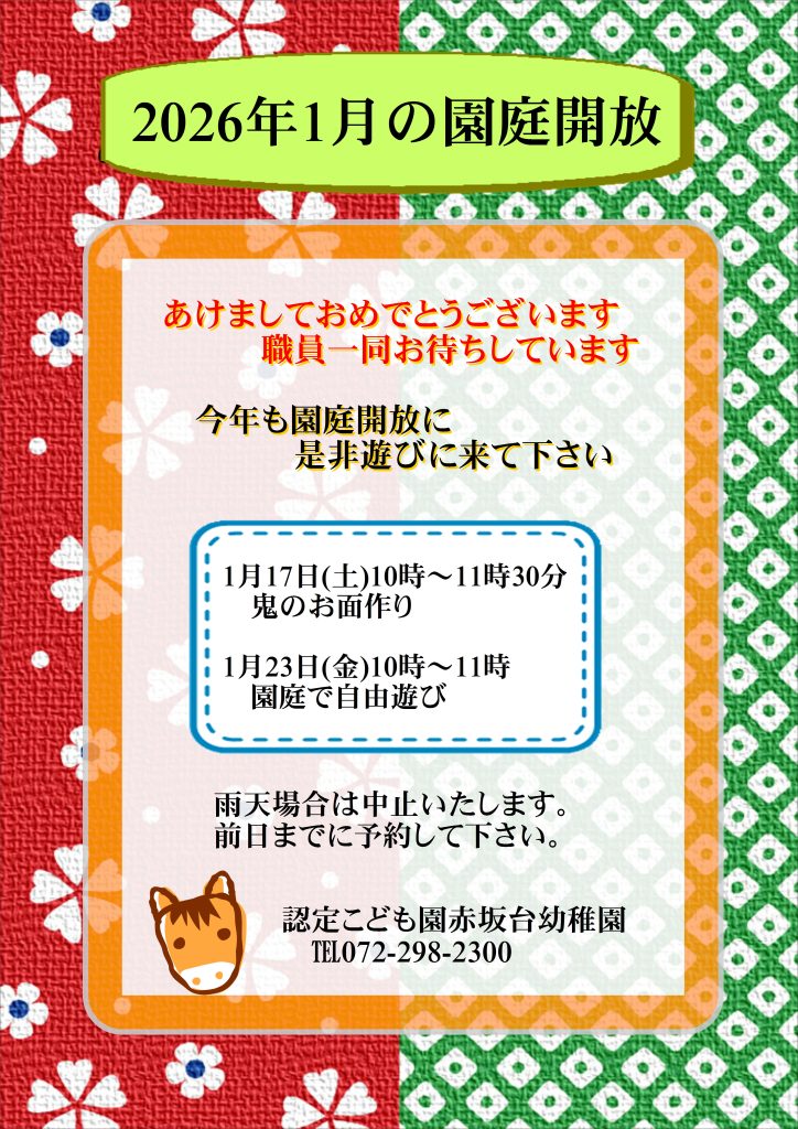 トップページ > おしらせ > 1月の園庭開放